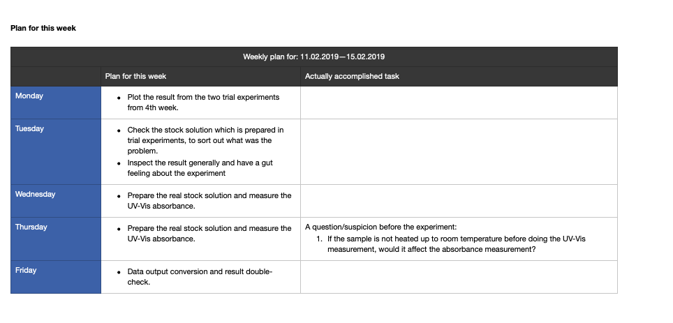 However, with all these plans implemented, My supervisor still had the impression that I didn’t have a plan. It means something went wrong in my execution. Having a plan doesn’t guarantee success. You need to be able to execute it, measure it, reflect on each week’s process, and improve on it.