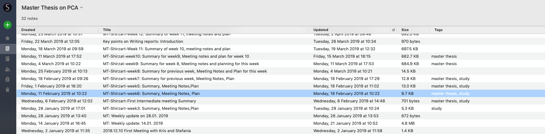 The note of each week contained a summary from the previous week and a plan for the current week:
