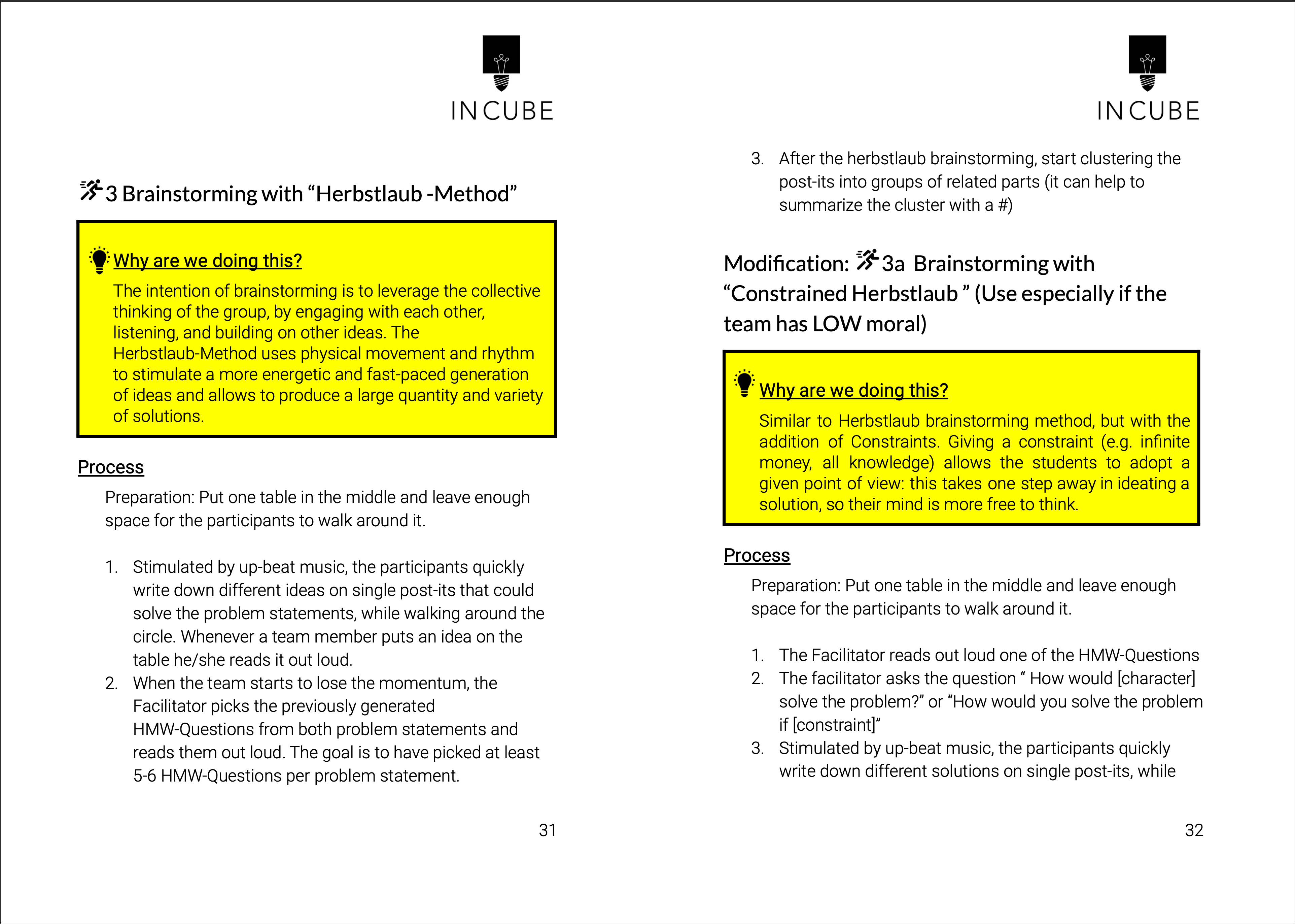 Time was 2019 summer, the second time I was part of the InCube organisation team. This time I was working on the content for the workshop facilitators. Having done facilitation twice, I have had some thoughts and ideas about what could make facilitator's job better.